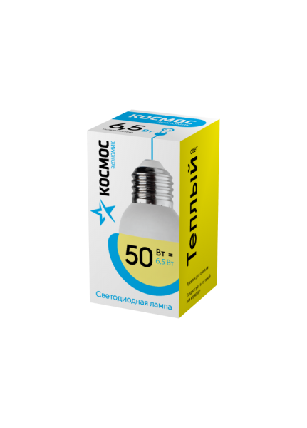 Светодиодная лампа / аналог лампы накаливания: 6,5Вт / 50Вт.
