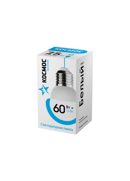 Светодиодная лампа / аналог лампы накаливания: 7,5Вт / 60Вт.