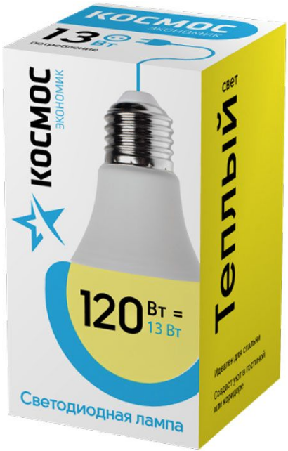Лампа светодиодная КОСМОС ЭКОНОМИК A60 13W Е27 3000K LkecLED13wA60E2730