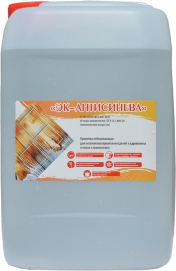 Пропитка отбеливающая «ЭК-АНТИСИНЕВА» предназначена для восстановления естественного цвета древесины после воздействия УФ-излучения, атмосферных осадков, повреждения плесенью и деревоокрашивающими грибами. ТУ BY 690297859.005-2011.