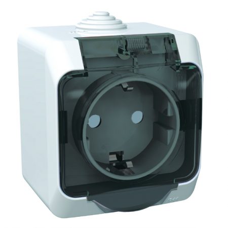 Розетка Этюд PA16-044B с/з с/ш с/кр IP44 16A откр.уст., бел. /РФ/