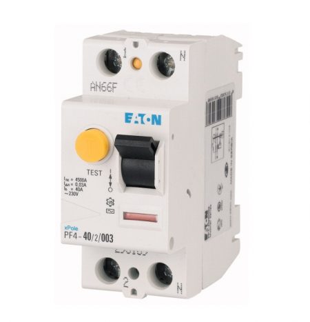 Устройство защитного отключения (УЗО) Eaton серии PF4 предназначено для отключения электрической сети при выявлении утечки тока около 30мА. Основная задача такого выключателя – защитить тело человека от удара электрическим током, а также отключить линию вследствие выявления тока утечки через изношенную или поврежденную изоляцию кабелей и некачественные соединения.